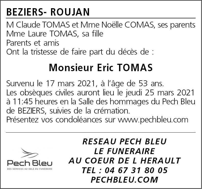 Décédé à Roujan (34320, France) le mercredi 17 mars 2021 à l'âge de 53 ans