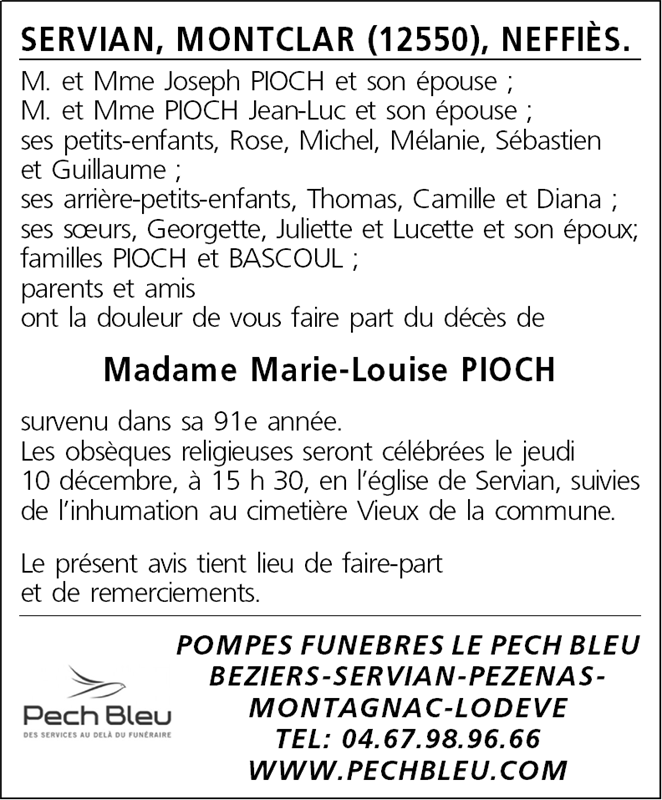 Veuve de Monsieur Jean-Marie PIOCH