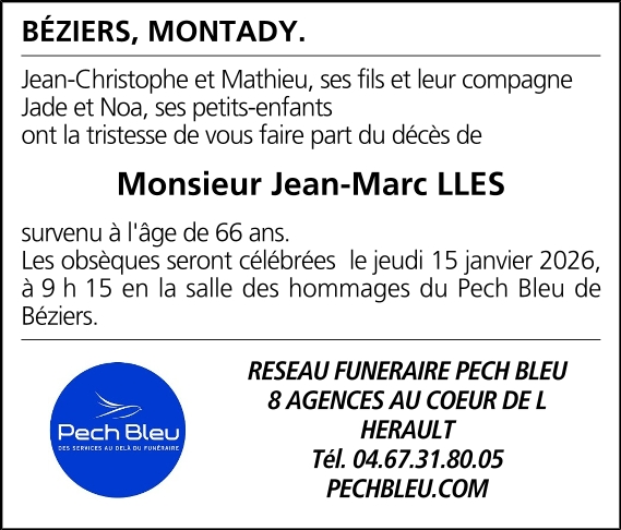 Décédé à Béziers (34500, France) le mercredi 7 janvier 2026 à l'âge de 66 ans