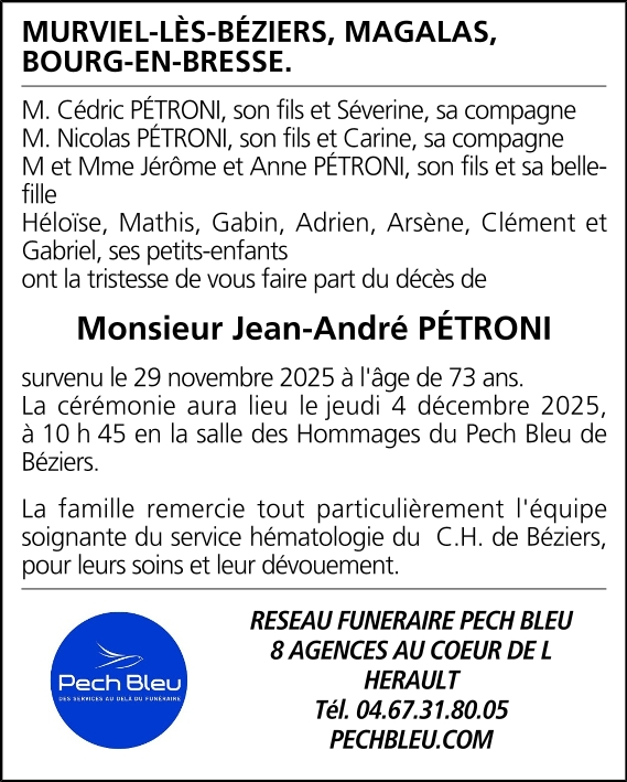 Décédé à Béziers (34500, France) le samedi 29 novembre 2025 à l'âge de 73 ans