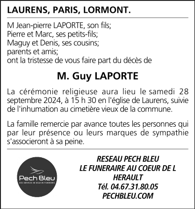 Décédé à Laurens (34480, France) le mardi 24 septembre 2024 à l'âge de 87 ans
