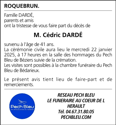 Décédé à Roquebrun (34460, France) le mercredi 15 janvier 2025 à l'âge de 41 ans