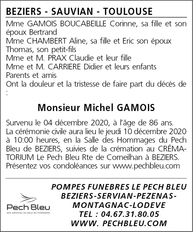 Décédé à Béziers (34500, France) le vendredi 4 décembre 2020 à l'âge de 86 ans