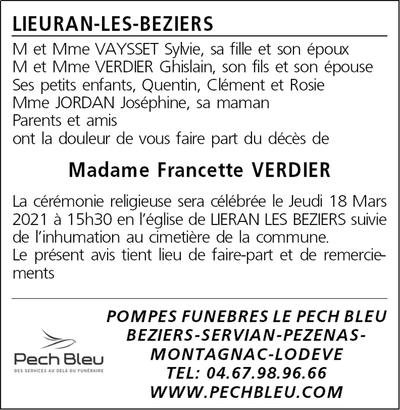 Veuve de Monsieur Gérard VERDIER