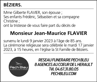 Décédé à Béziers (34500, France) le lundi 9 janvier 2023 à l'âge de 85 ans