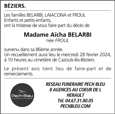 Veuve de Monsieur Mohamed BELARBI
