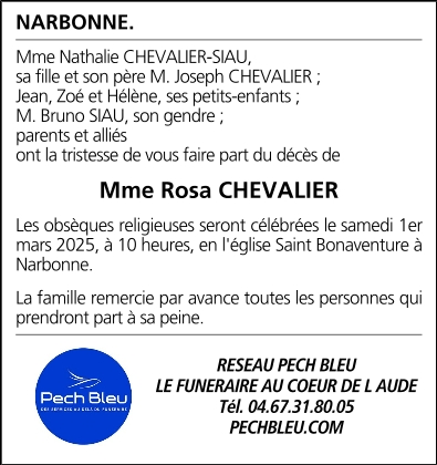 Décédée à Narbonne (11100, France) le dimanche 23 février 2025 à l'âge de 85 ans