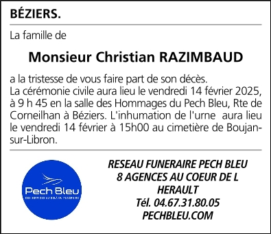 Décédé à Pézenas (34120, France) le dimanche 9 février 2025 à l'âge de 87 ans