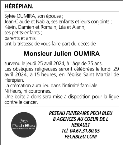 Décédé à Béziers (34500, France) le jeudi 25 avril 2024 à l'âge de 75 ans