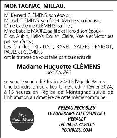 Décédée à Montagnac (34530, France) le vendredi 2 février 2024 à l'âge de 82 ans