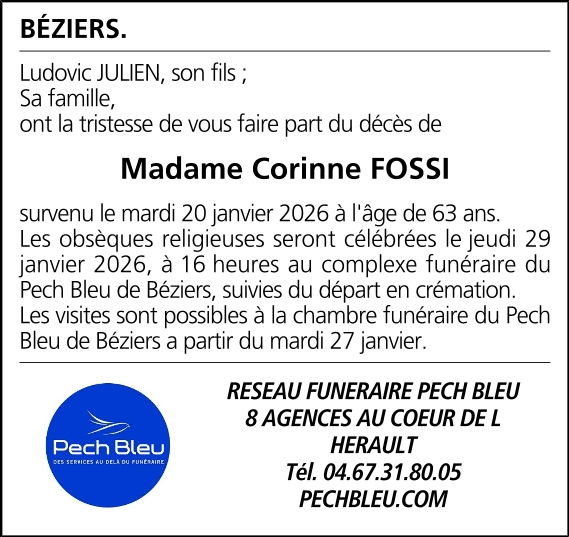 Décédée à Boujan-sur-Libron (34760, France) le mardi 20 janvier 2026 à l'âge de 63 ans