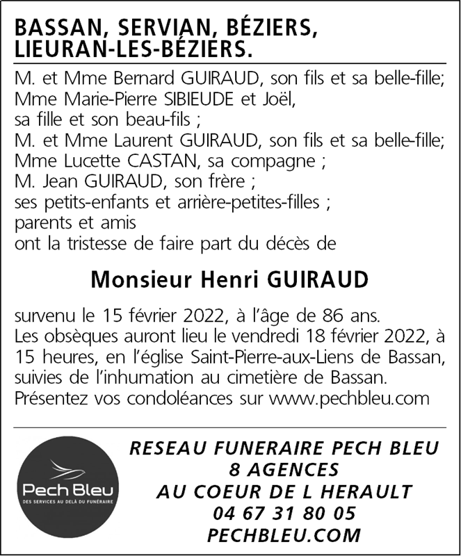 Décédé à Béziers (34500, France) le mardi 15 février 2022 à l'âge de 86 ans