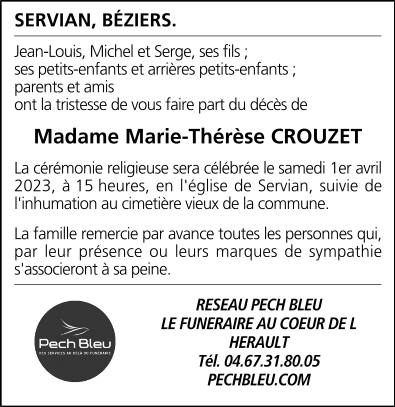 Madame Marie-Thérèse CROUZET née MONTROZIER