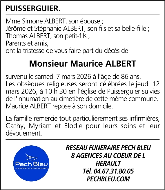 Décédé à Puisserguier (34620, France) le samedi 7 mars 2026 à l'âge de 86 ans