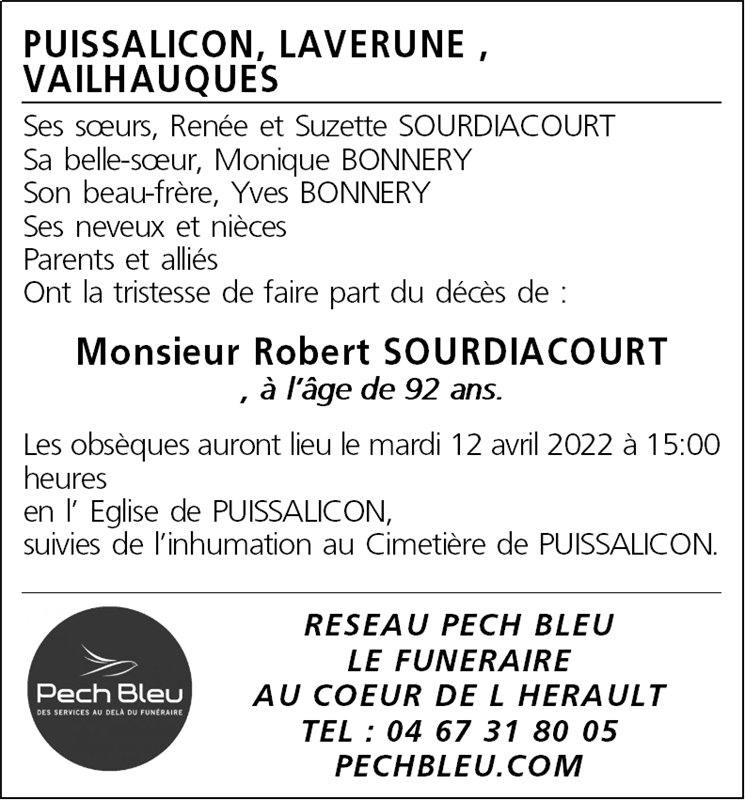 Décédé à Béziers (34500, France) le mardi 5 avril 2022 à l'âge de 92 ans