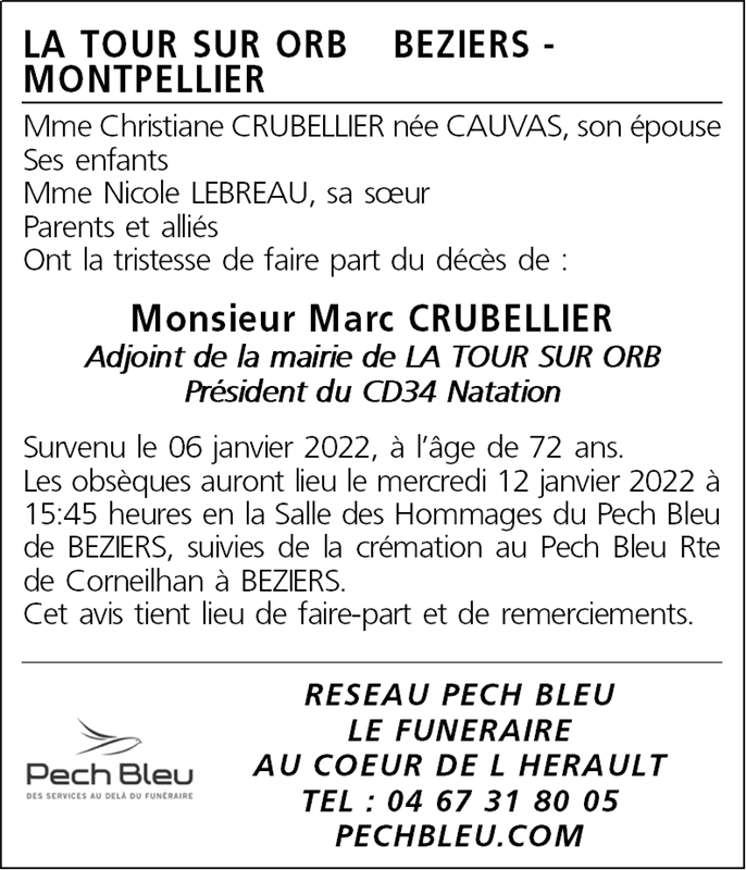 Décédé à Boujan-sur-Libron (34760, France) le jeudi 6 janvier 2022 à l'âge de 72 ans