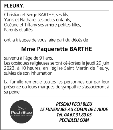 Madame Paquerette BARTHE née MARTINEZ