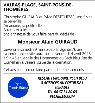 Veuf de Madame Marie-José GUIRAUD