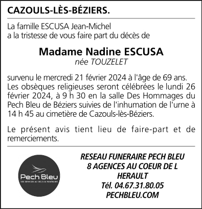 Madame Nadine ESCUSA née TOUZELET