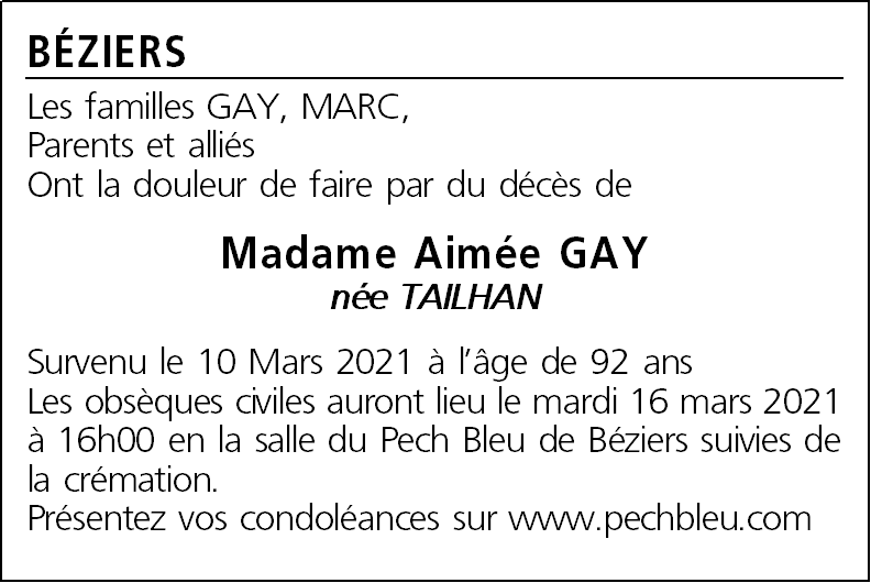 Madame Aimée GAY née TAILHAN