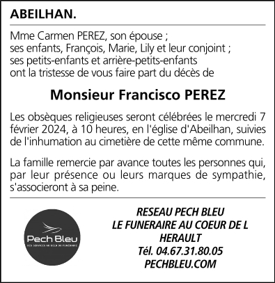 Décédé à Abeilhan (34290, France) le dimanche 4 février 2024 à l'âge de 93 ans