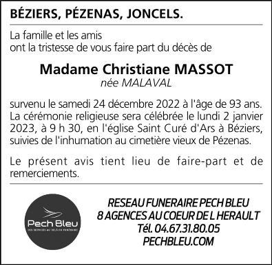 Madame Christiane MASSOT née MALAVAL