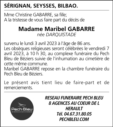 Madame Maria Isabel GABARRE née DARQUISTADE