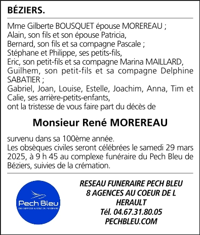 Décédé à Béziers (34500, France) le vendredi 21 mars 2025 à l'âge de 99 ans