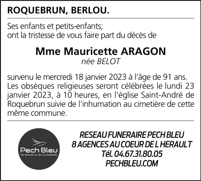 Madame Mauricette ARAGON née BELOT