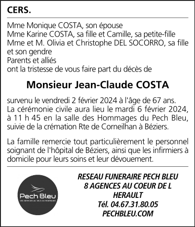 Décédé à Béziers (34500, France) le vendredi 2 février 2024 à l'âge de 67 ans