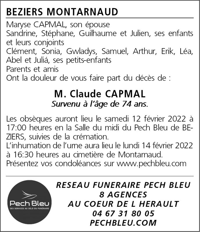 Décédé à Béziers (34500, France) le lundi 7 février 2022 à l'âge de 74 ans