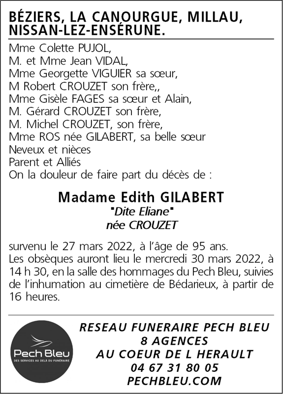 Madame Edith GILABERT née CROUZET
