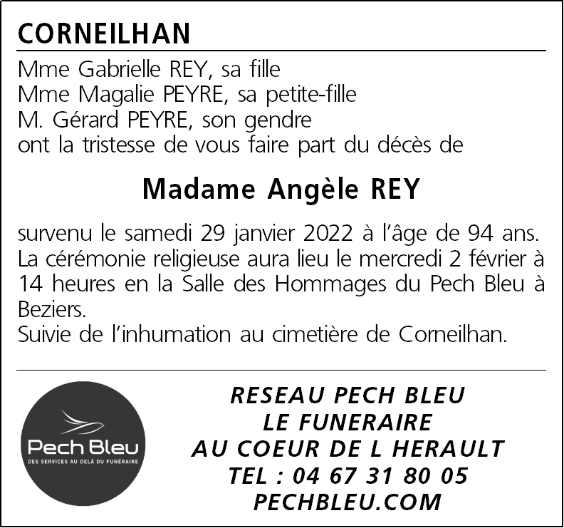 Décédée à Béziers (34500, France) le samedi 29 janvier 2022 à l'âge de 94 ans