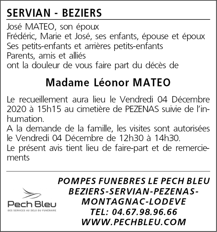 Décédée à Boujan-sur-Libron (34760, France) le mardi 1 décembre 2020 à l'âge de 76 ans