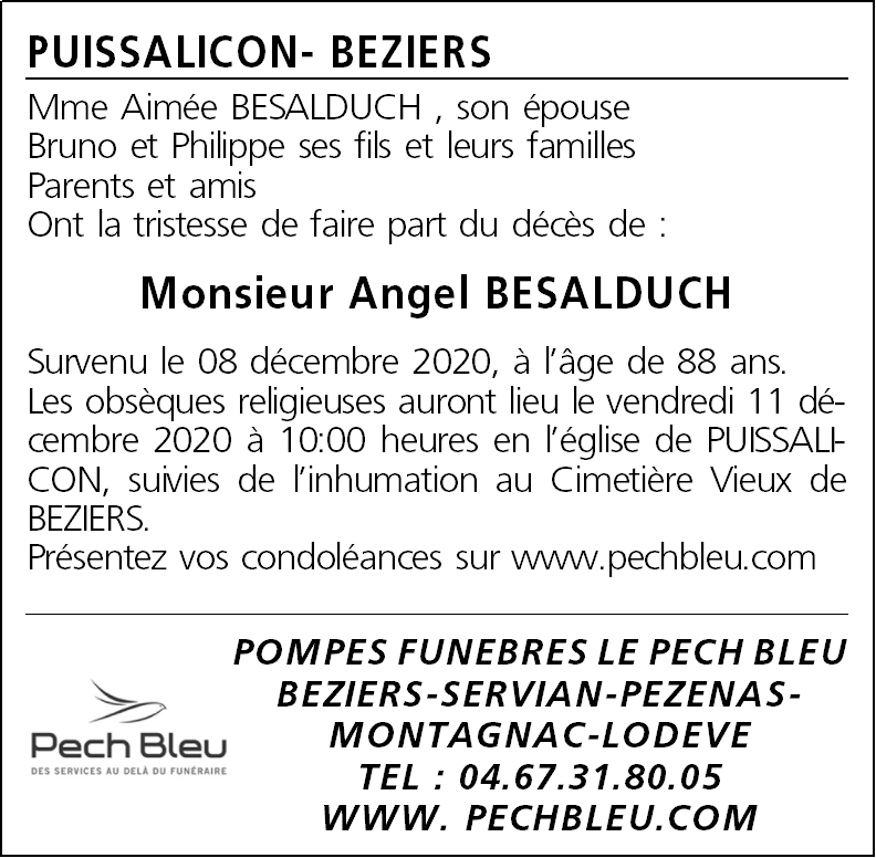 Décédé à Puissalicon (34480, France) le mardi 8 décembre 2020 à l'âge de 88 ans