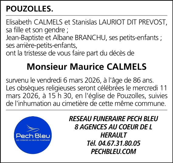 Décédé à Béziers (34500, France) le vendredi 6 mars 2026 à l'âge de 86 ans