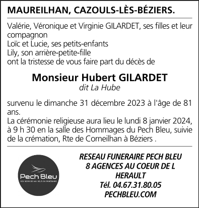 Décédée à Béziers (34500, France) le lundi 1 janvier 2024 à l'âge de 81 ans