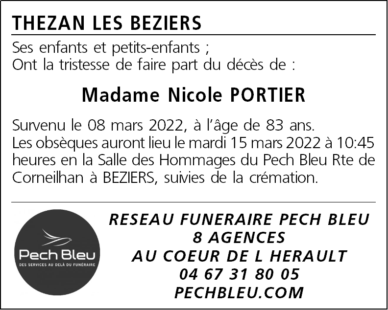 Décédée à Béziers (34500, France) le mardi 8 mars 2022 à l'âge de 83 ans