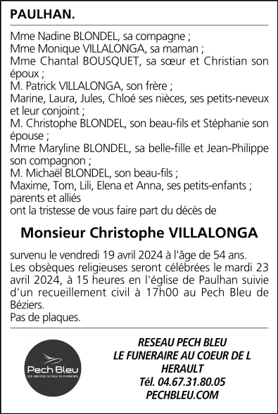 Décédé à Paulhan (34230, France) le vendredi 19 avril 2024 à l'âge de 54 ans