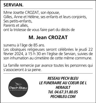 Décédé à Béziers (34500, France) le dimanche 18 février 2024 à l'âge de 85 ans