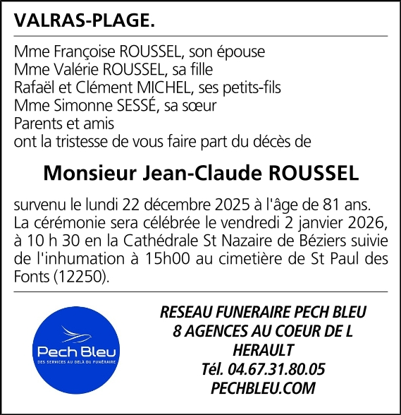 Décédé à Cers (34420, France) le lundi 22 décembre 2025 à l'âge de 81 ans