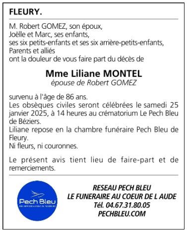 Madame Liliane GOMEZ née MONTEL